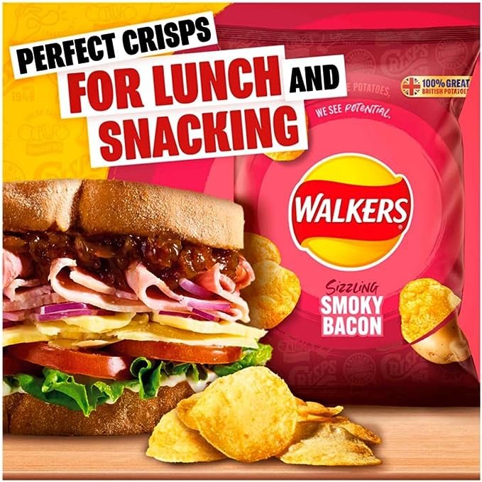 100% Great British Potatoes Cooked with Sunseed oil, naturally lower in saturates, No Artificial colours or preservatives, No MSG, Suitable for vegetarian. You look at a potato, what do you see? Probably just a potato, right? Well, in 1948 Henry Walker saw Potential. With a bite of positivity he turned his humble spuds into irresistible Walkers crisps. Since then, our crisps have been providing moments of delicious crunchiness and smiles to everyone in Britain. So, when life gives you potatoes…Make Crisps